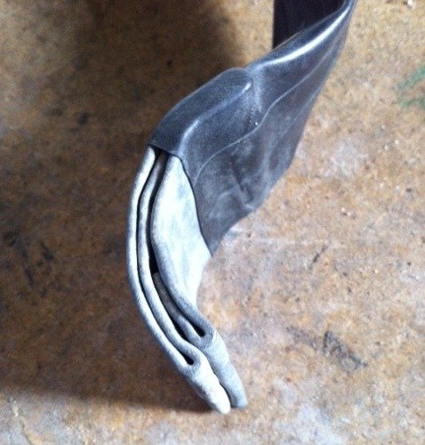 Så udfra de DIY guides der henvises til lavede jeg lige lidt freestyle, pladebly med en cykelslange uden om, den er dermed fleksibel, så den den formes omkring anklenOmer original