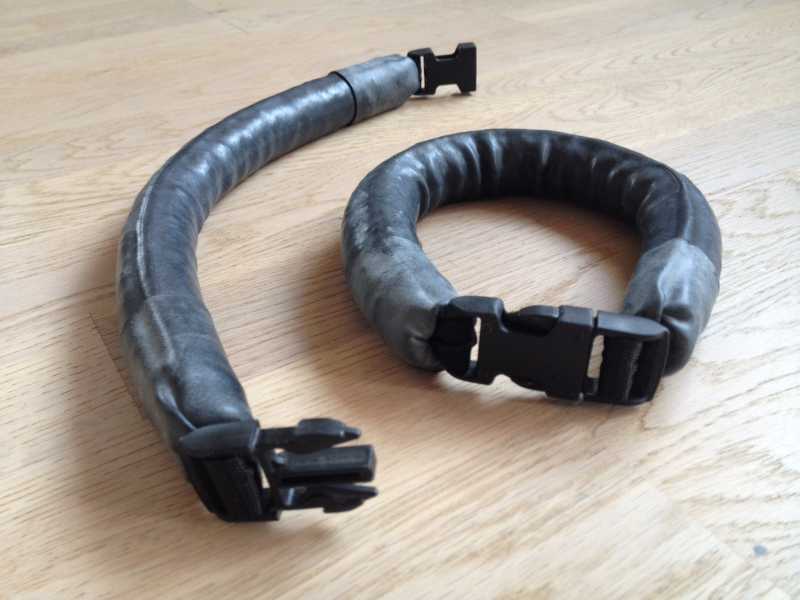 Jeg har læst mig frem til at fordelen ved denne type neopren er mindre kompression ved dybe dyk, og reduceret behov for belastning. At kalde det neopren er vel åbent for fortolkning. For mig er neopren lig med en gummimasse med en masse luftbobler :cheer: Der må være nogen derude som kender mere til compressed neopren – for jeg kan ikke få øje på en valid grund til at vælge den til danske forhold???Anyhow, jeg blev så animeret af de fremragende link til produktion at neck/ankelbly at jeg strøg i kælderen og molestrerede den første og bedste rygsæk med spænder jeg kunne finde. Det tog mig præcis 10 minutter, og så mangler jeg bare nogle coatede blykugler så er de færdige. Super fedt!