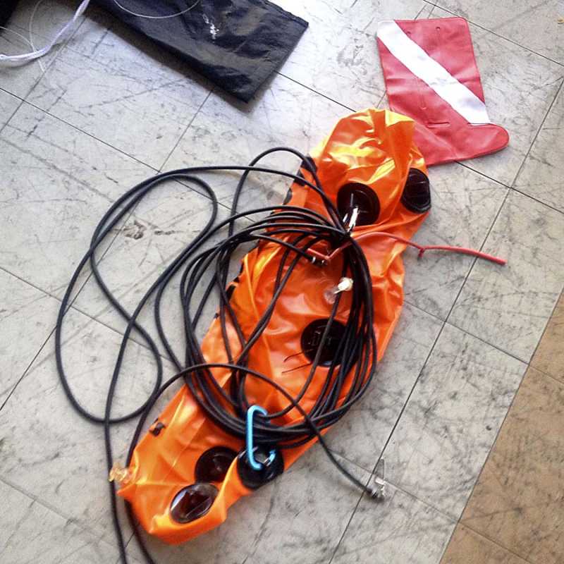 Jeg har tidligere prøvet at have bøjeline igennem en D-ring og fastgjort til harpunen, lidt som det Mace beskriver, men jeg oplevede at det gav nogle uhensigtsmæssige hiv i harpunen som kunne forstyrre sigtet. Derfor er harpunen nu fastgjort til en D-ring foran på blybæltet med denne: http://www.kingfish.dk/dykkerudstyr/hardware/tilbehor/ist-coiled-lanyard