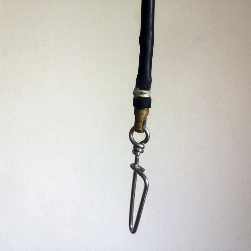 Min stringer hænger på bøjen, og er lavet af en 1mm nylonline + et galvaniseret søm, mere high-tech end det, behøver det ikke være.