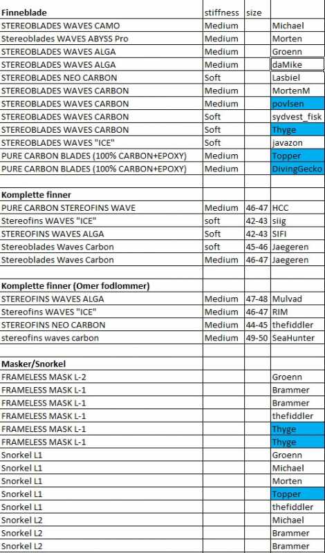 Alt dette er opsamlet igennem tiderne ovre på Deeperblue. Jeg har et sæt af deres finner, men i originale Omer Stingray-fodlommer.