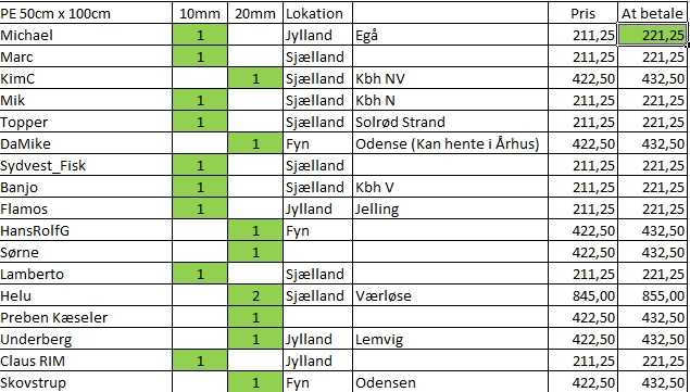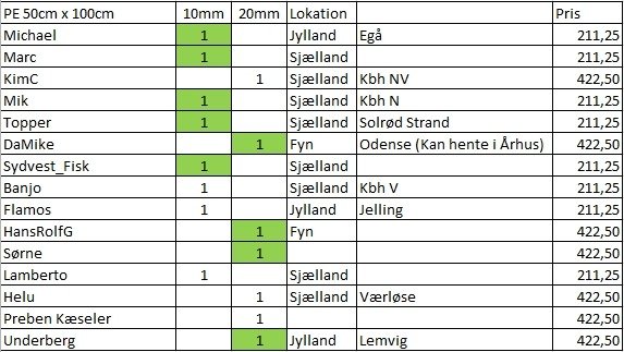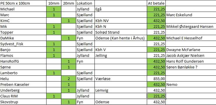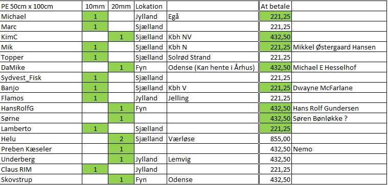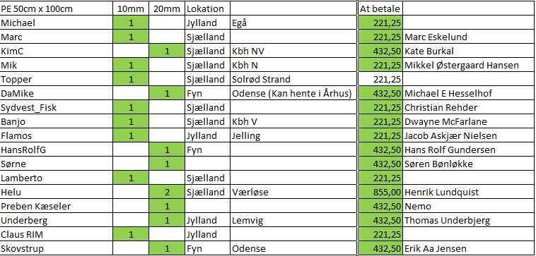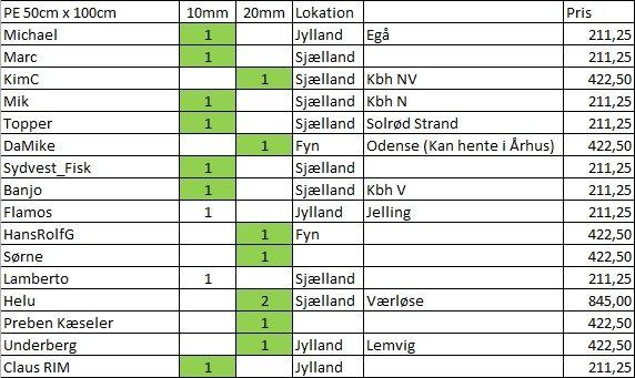 Skriv om i er interesseret og med tykkelse (10mm/20MM) og lokation (Jylland/Sjælland/Fyn), så laver jeg en endelige bekræftigelse når vi har fået samlet nok
