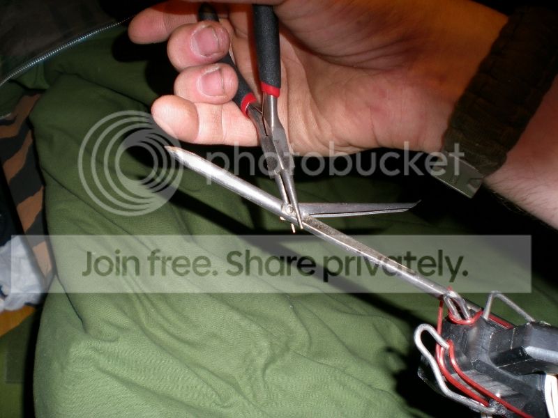 Du skal klemme lige akkurat nok, til at når du holder spyddet med spidsen opad, og ruller det hurtigt mellem hænderne så kan flopperen klappe ud (via centrifugalkraften), men ikke klappe ind igen (via tyngdekraften).