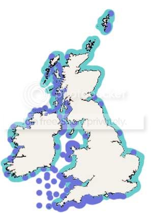 Ifølge kilder på nettet er havålen almindelig omkring Skotland samt den westlige- og sydlige del af Storbritannien – men ikke i den østlige. Ifølge dit kort er der igen forskel i saliniteten omkring den sydlige og østlige del af Storbritannien. Men bestandtætheden er åbenbart meget forskellig. Lilla markerer områder hvor den er registreret:
