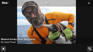 Der er nu også andet end fisk og delfiner omkring Latham Island. Her kan jeg prale med at have landet en unge sule på let poppergrej – bemærk handskerne fra Silvan 😛 :