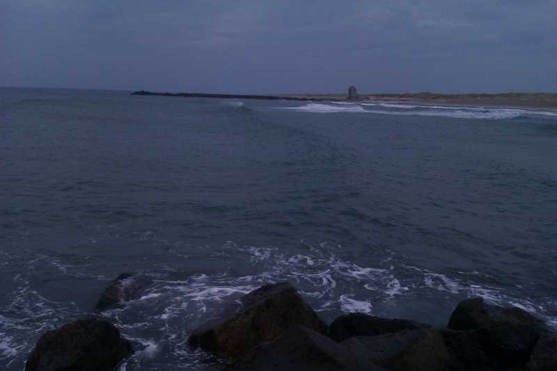 TomDeltagerRågeleje i aftes: Let vestenvind langs kysten og overraskende store bølger lidt skråt på kysten gav dårlig sigt. Desuden begyndende algeopblomstring.