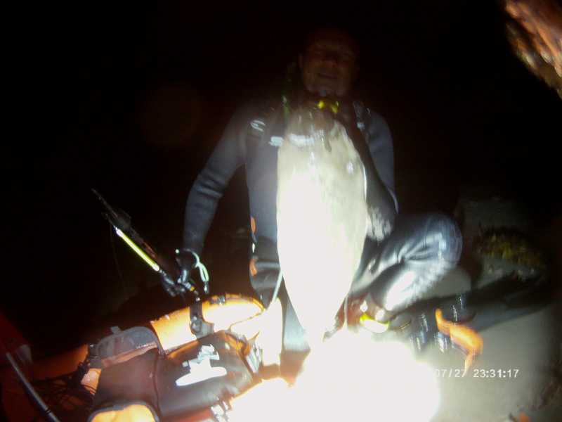 Jens BaldDeltagerKørte til det sydlige fyn i går aftes og hoppede i vandet udfor helnæs Fyr. Bunden var desværre lidt kedelig med meget af det lange sommertang der vokser helt vildt og gør sigten umulig – men vandet var nu heller ikke for klart og efter 1 1/2 time relokerede jeg til lidt længere nordpå men med lige så dårlig sigt og ingen fisk. Så ind i bilen igen men dog kun med longjoh på og så til storebælt. Her var der to fyre der var på vej i vandet men da de skulle på ydersiden kunne jeg tage den med ro. Hoppede i på indersiden hvor der var pænt mange fisk men alle undermålere – lige indtil jeg ser en på godt 3+ kg som smutter væk. Svømmede rundt i området et stykke tid og ser den så igen, men igen uden at kunne komme på skudhold og ender så med at tage en enkelt lille på 1kg med hjem til middagen i dag. Men god sigt og dejligt med stjerner på himlen.