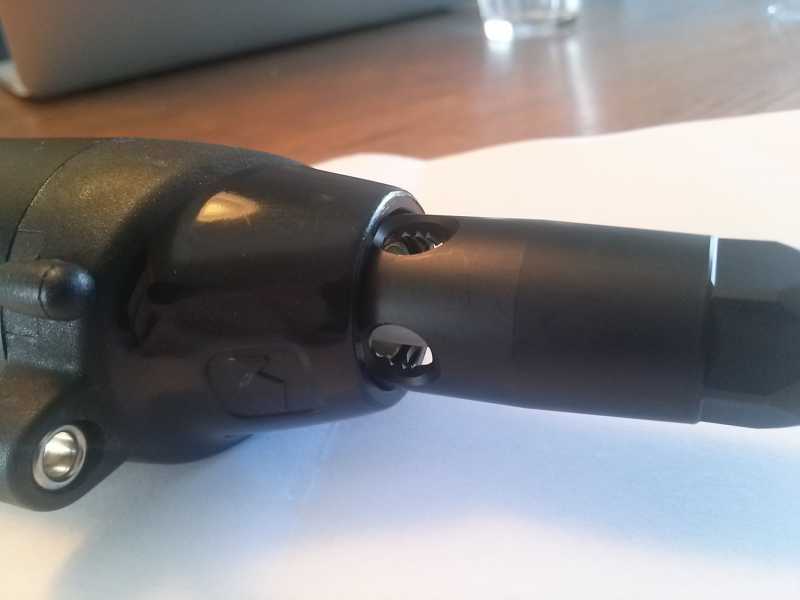 Det som er underligt er gummiresterne – havde det været en One Air, så kunne pakningen måske godt været gået i stykker og vandret ned og blokeret for låsemekanismen. Men den pakning, jeg taler om findes ikke i en Airbalete og jeg vil umiddelbart tro,at hvis det var en o-ring andetsteds fra i gøbben, så ville der nok være stor sandsynlighed for, at den ville være lækket.Men ja, hvis den er ny, så kontakt forhandleren. Hvis ikke, så finder vi ud af noget. Jeg har en masser billeder af hvordan man skiller en One Air ad. Mange af delene er de samme i jeres.
