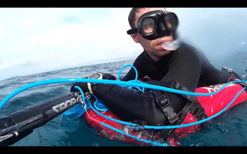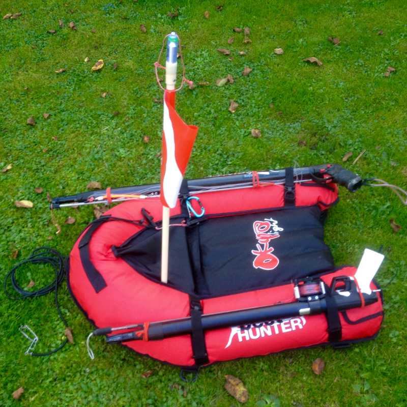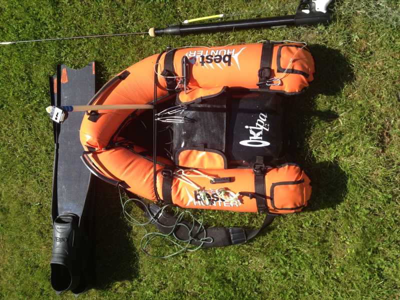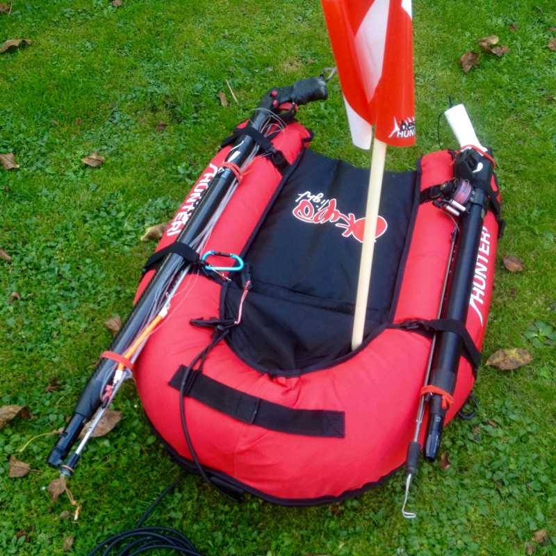 Det er vist hvad der er værd at sige om det, det er en helt fantastisk flåde at dykke med, og den er ikke tungere at slæbe end en torpedo, selv ikke med en tung last fordi fangsten er ude af vandet.EDIT: Det er muligt at spænde i hvert fald 2 ekstra harpuner fast på flåden så de holdes ude af vandet, i de montagepunkter (de sorte elastikstropper) som sidder på hver side af flåden, og den er internt holdt flydende af tre individuelle luftkamre, som kan udskiftes efter forgodtbefindende, skulle det vise sig nødvendigt.