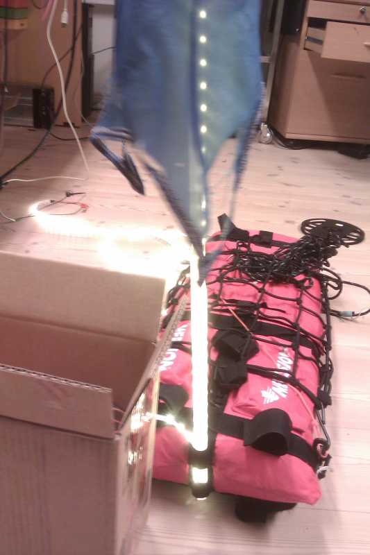 Claus RimestadDeltager:cheer: Nej det er en ganske almindelig lysdiode strimmel til 12V som kan købes over alt, havde et stykke i overskud. Har nu lagt det ind i flagstangen og forsejlet i begge ender med varme lim, snoede den så der kommer lys til alle sider. Den får så en lille 4 celles LiPo batteri at leve af. Batteriet er en 1800mA og den bruger 200ma så der er til 9 timer. Det giver også udmærket arbejdslys ved bøjen når fisken skal fixeres og linen filtres ud mm det skal prøves det er mok lidt over kill men hvad det er 100% genbrug så hvad 👿 👿 Der kommer lige et nat billed når den kommer på vandet måske jeg kan undvære lygte ha ha ha :whistle: