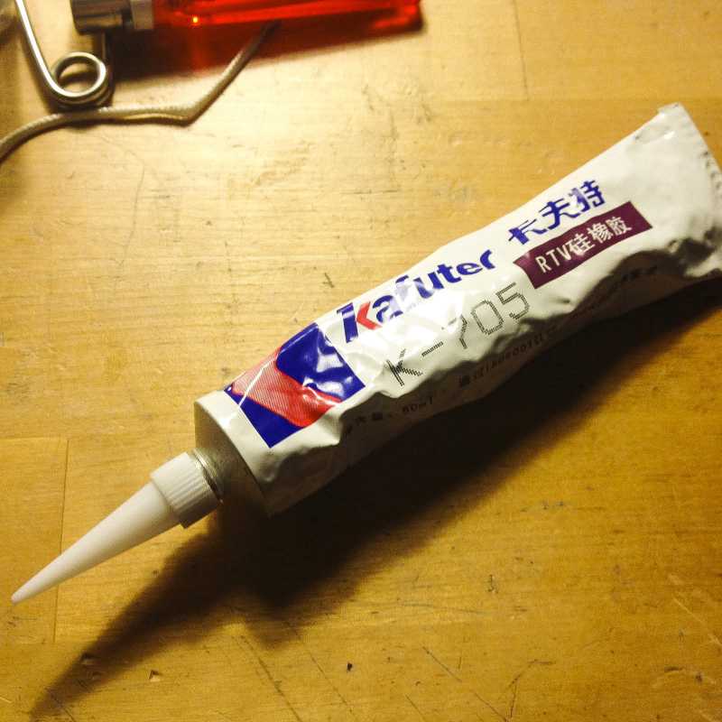 En billig, lokal silikone. (Float line plugs i rustfrit stål behøver ikke silikone, da besnøringen er nok til at tætne dem)