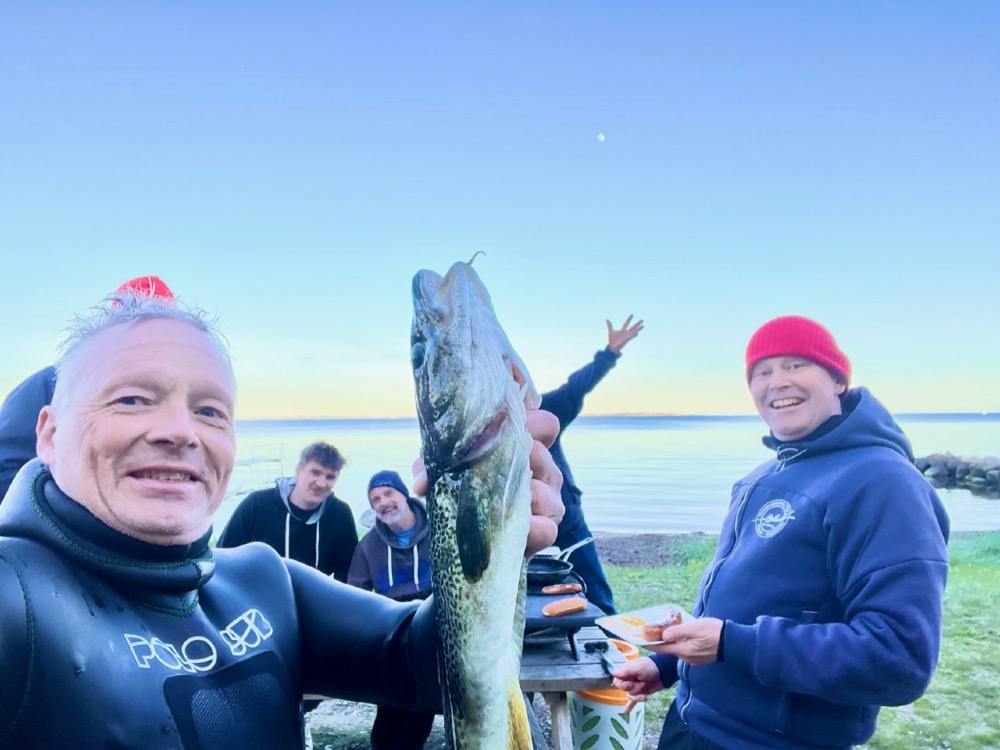 Fyraften dyk med Havbasserne drevet af gammelmandsjæger Niels Klaris ikke mange torsk de to torsk 6 mand så kom med hjem