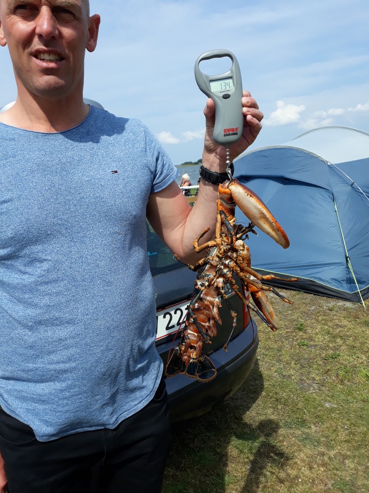 Hummer fanget af Kenneth Lund Hansen og fangstrapport udgivet d. 12 juli 2021. Fisken vejede 1,34kg og målte 13cm.. Fisken blev fanget ved Vesterhavet.