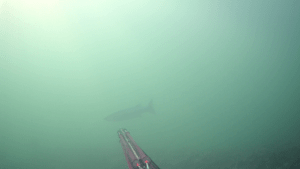 Jeg laver aspetto dyk, hvilket tiltrækker nogle havbars som kommer ind forbi. Jeg har kornet på en havbars to gange, og den ene gang på en rigtig flot en. Jeg holder igen da det jo er multen jeg er kommet efter! Som tak for ikke at skyde barsen, får jeg kort efter min første multe på spydet. Yes! En kæmpe oplevelse.