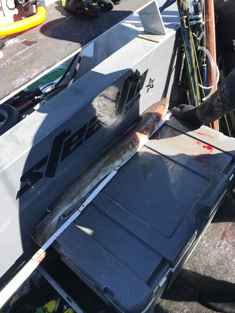 På vraget gik der efter nogle rolige dyk, harpun i det. Jeg havde nemlig set en lange og den skulle helt klart på menuen.