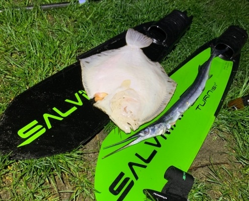 Eftermiddagsdyk efter hornfisk. Flot sted, over vandet, umiddelbart…