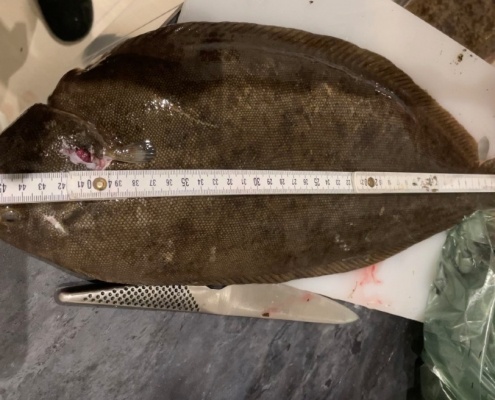 Dårlig sigt og bølger, men 2 fine pighvar på 44 og 47 cm