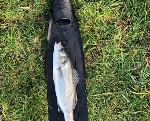 Var på jagt efter skrubber på ca. 2 meters vand. Havbarsen…
