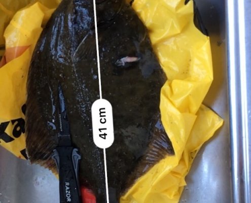 Stor skrubbe i fin stand. Skød forbi et par hornfisk