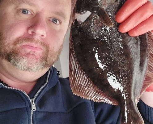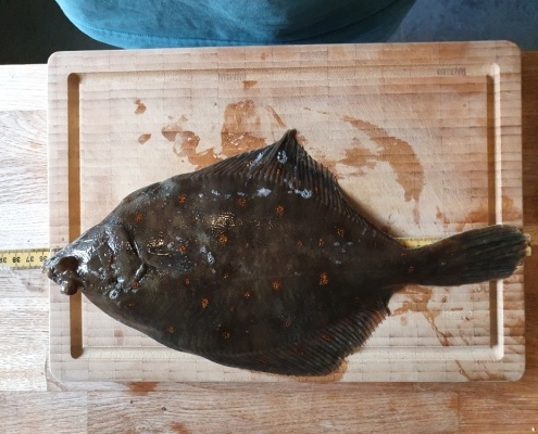Rødspætten blev (ret usædvanligt) fanget på to meter vand.…