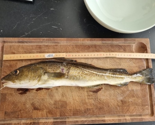 Fed tur – Torsk fanget af Jacobseidler ved Knud Rasmussen statuen