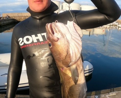 Torsk taget på vrag. på ca 23 meters dybde.